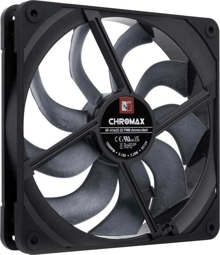 • Noctua NF-A14x25 G2 PWM chromax.black Gehäuseluefter 140 mm (NF-A14x25 G2 PWM CH.BK)