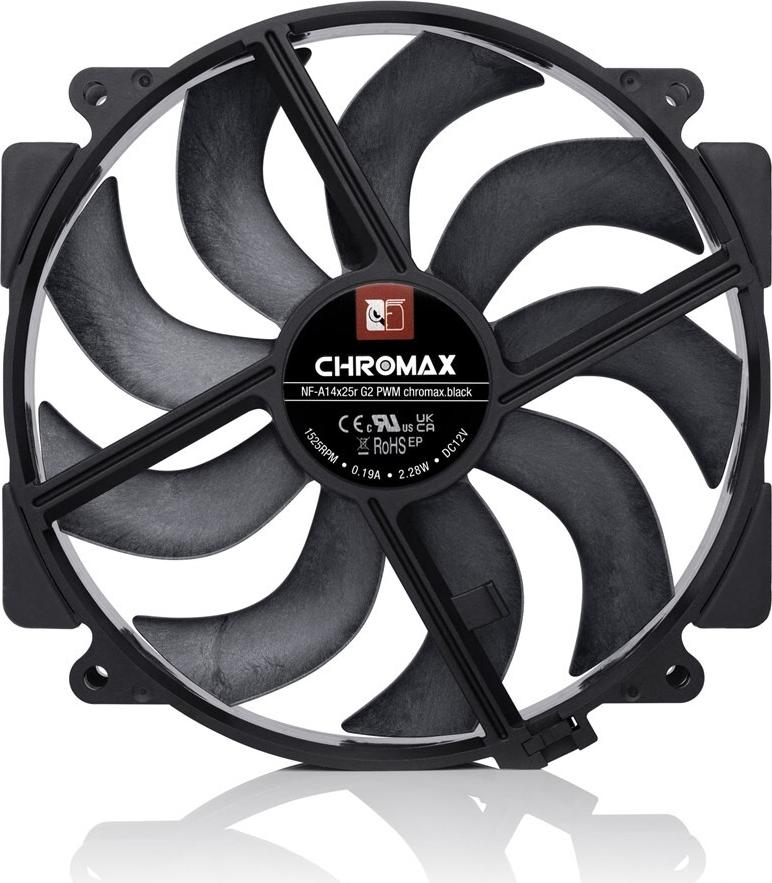 • Noctua NF-A14x25r G2 PWM chromax.black Gehäuseluefter 140 mm (NF-A14x25r G2 PWM CH.BK)
