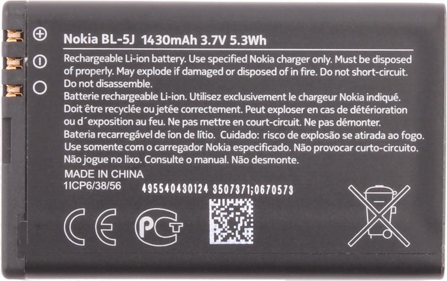 Nokia BL-5J - Batterie für Mobiltelefon 1 x Li-Ion 1430 mAh - für Nokia 5228, 5230, 5235, 5800, C3, N900, X1, X6; Asha 200, 201, 302; Lumia 520, 530 (02711B5)