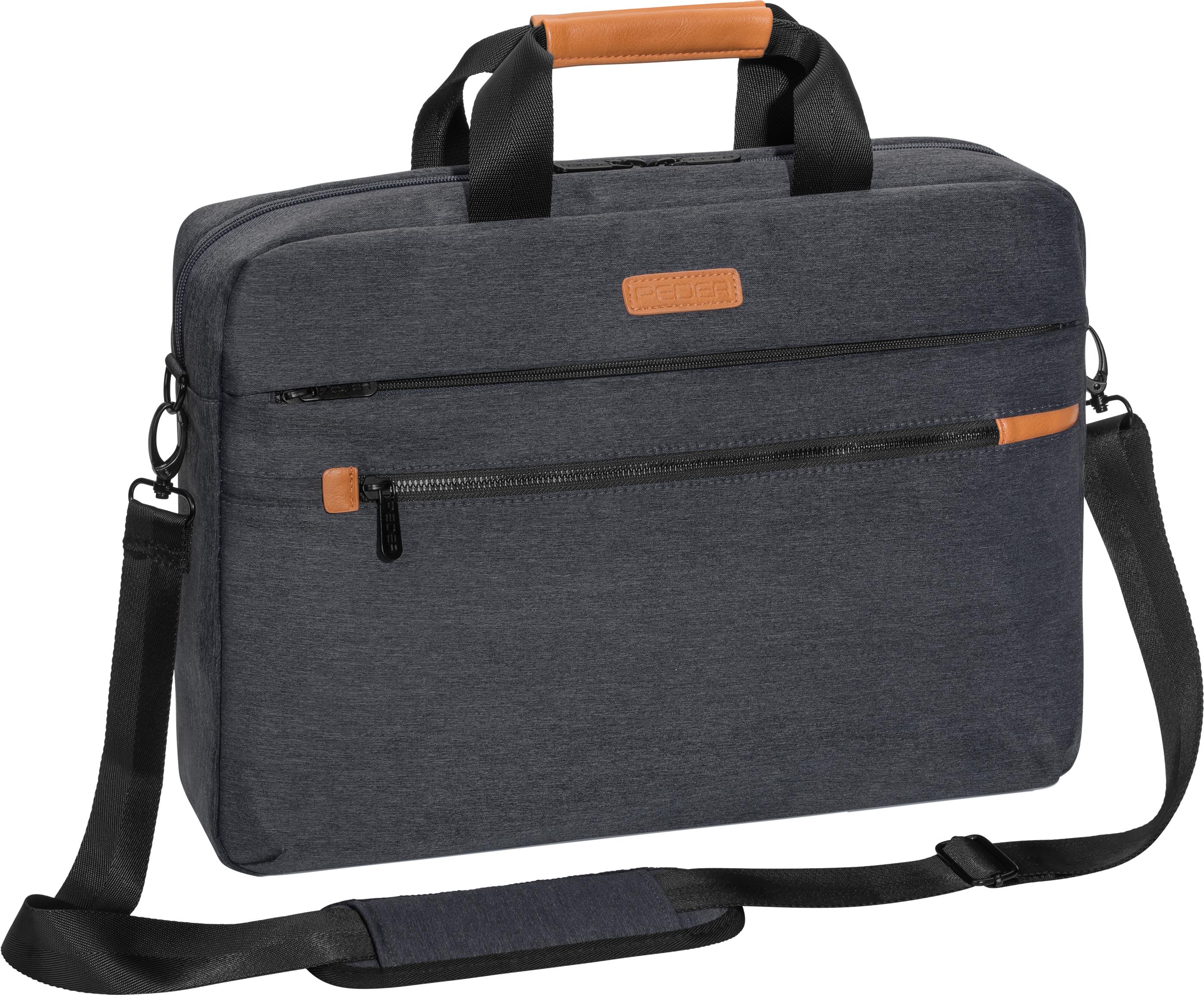 Die elegante PEDEA Umhängetasche ist eine Laptoptasche für alles, was Sie wirklich brauchen. Weitere Reißverschlussfächer auf der Vorder- und Rückseite bringen Netzteile, Kabel, externe Festplatten, Mäuse, Schlüssel (integrierter Schlüsselhalter) und anderen Bürobedarf unter. Lange Reißverschlüsse ermöglichen Ihnen einen leichten Zugang zu Ihren Essentials. Die Tasche verfügt über eine dicke Polsterung und wasserabweisende Materialien, sodass Ihre Besitztümer bestens vor Kratzern, Nässe und Stößen geschützt sind. Falls Sie unterwegs oder auf Reisen sind, befindet sich auf der Rückseite der Tasche eine Halterung für ein Trolleygestänge.