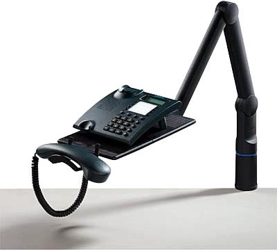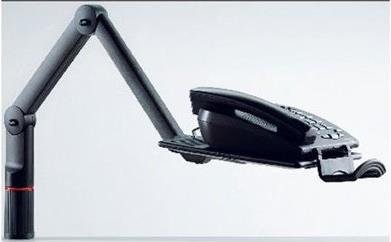 Novus Telefonschwenker mit 2-teiligem Gelenkarm für die Positionierung in 3 festen Stufen. Die flexible Tragplatte lässt sich quer oder längs montieren.