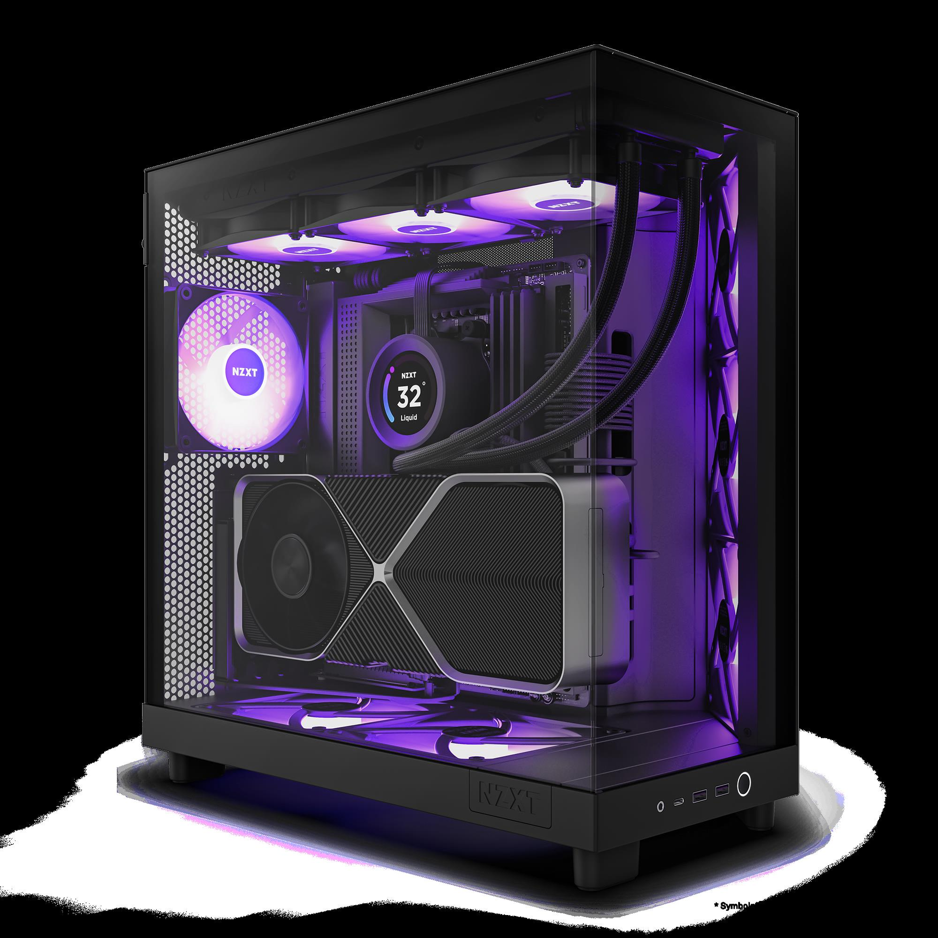 | Kühlsystem | Vorderseite: 120 mm Lüfter x 3 / 1300 U/min (55.17 cfm) / 26.1 dBA Oberseite: 120/140 mm Lüfterhalterung x 3 / unterstützt 3 x 120 mm oder 2 x 140 mm Lüfter oder 120/140/240/280/360 mm Kühler Unten: 140 mm Lüfterhalterung x 2 Rückseite: 120 mm Lüfterhalterung x 1 / 1 x 120 mm Lüfter oder 1 x 120 mm Kühler wird unterstützt |