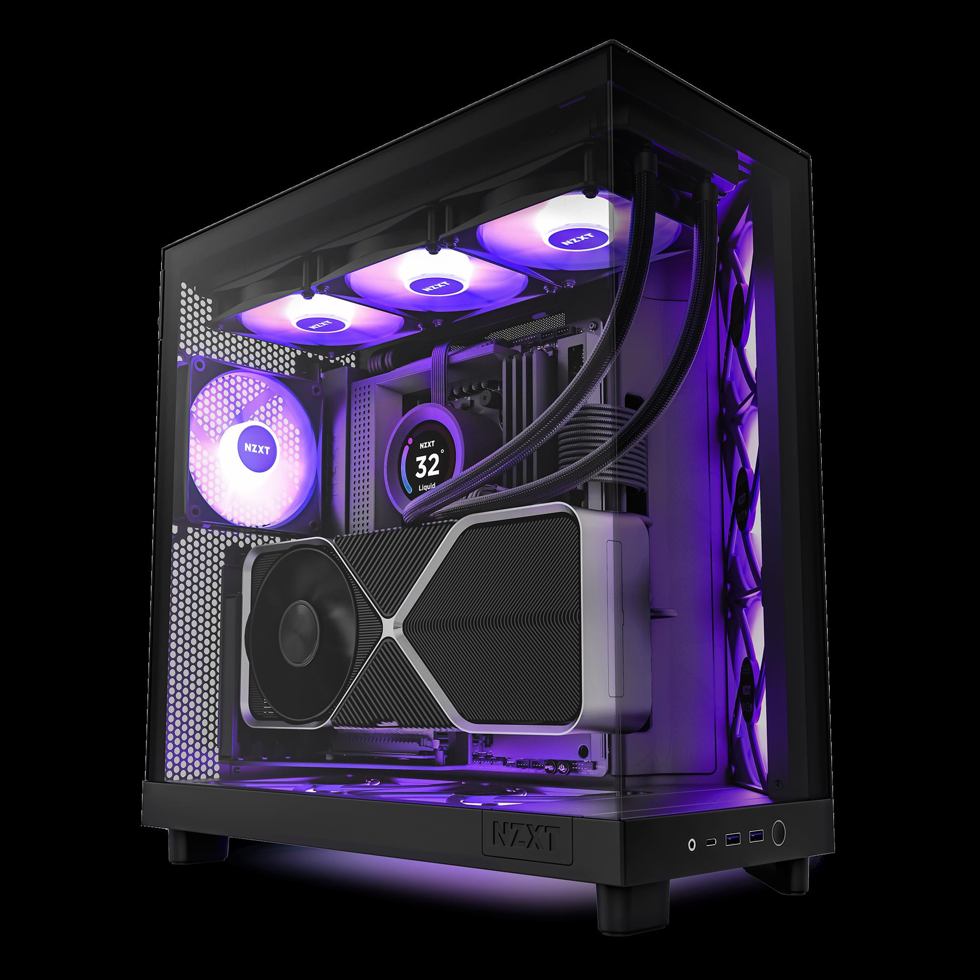 Das NZXT H6 Flow RGB Mid-Tower-Gehäuse kombiniert Funktionalität mit Stil und ist damit eine gute Wahl für Gamer und Profis. Dieses Gehäuse unterstützt eine breite Palette von Motherboards von ATX bis Mini-ITX und ist mit RGB-Lüftern ausgestattet, die nicht nur sein ästhetisches Erscheinungsbild verbessern, sondern auch zu seinem effizienten Kühlsystem beitragen. Mit einer maximalen Höhe des CPU-Kühlers von 163 mm und einer Länge der Grafikkarte von bis zu 365 mm nimmt es problemlos leistungsstarke Komponenten auf. Dank der USB 3.2 Gen 1- und USB-C 3.2 Gen 2-Anschlüsse an der Vorderseite haben Sie schnellen Zugriff auf Hochgeschwindigkeitsanschlüsse für alle Ihre Geräte. Darüber hinaus vereinfachen das werkzeuglose Design und das umfassende Staubfiltersystem die Wartung und sorgen dafür, dass Ihr System sauber bleibt und reibungslos läuft. Egal, ob Sie ein Gaming-Rig oder eine professionelle Workstation bauen, das NZXT H6 Flow RGB bietet die Vielseitigkeit, Kühleffizienz und das schlanke Design, das Sie brauchen.