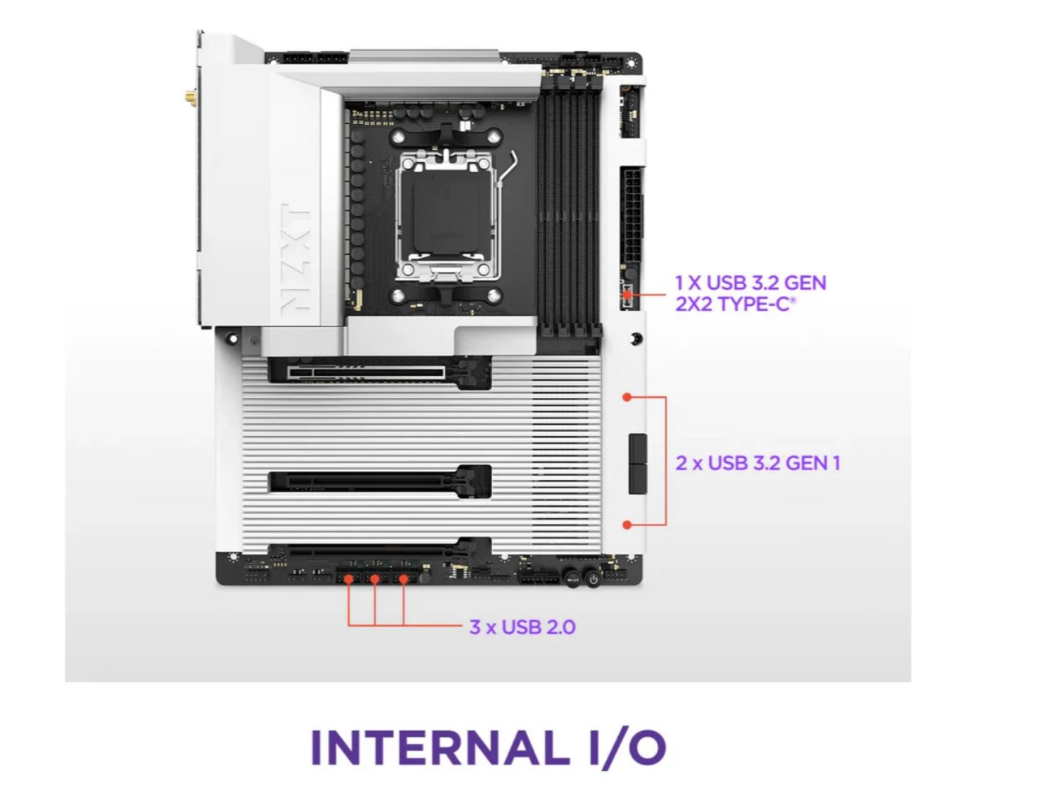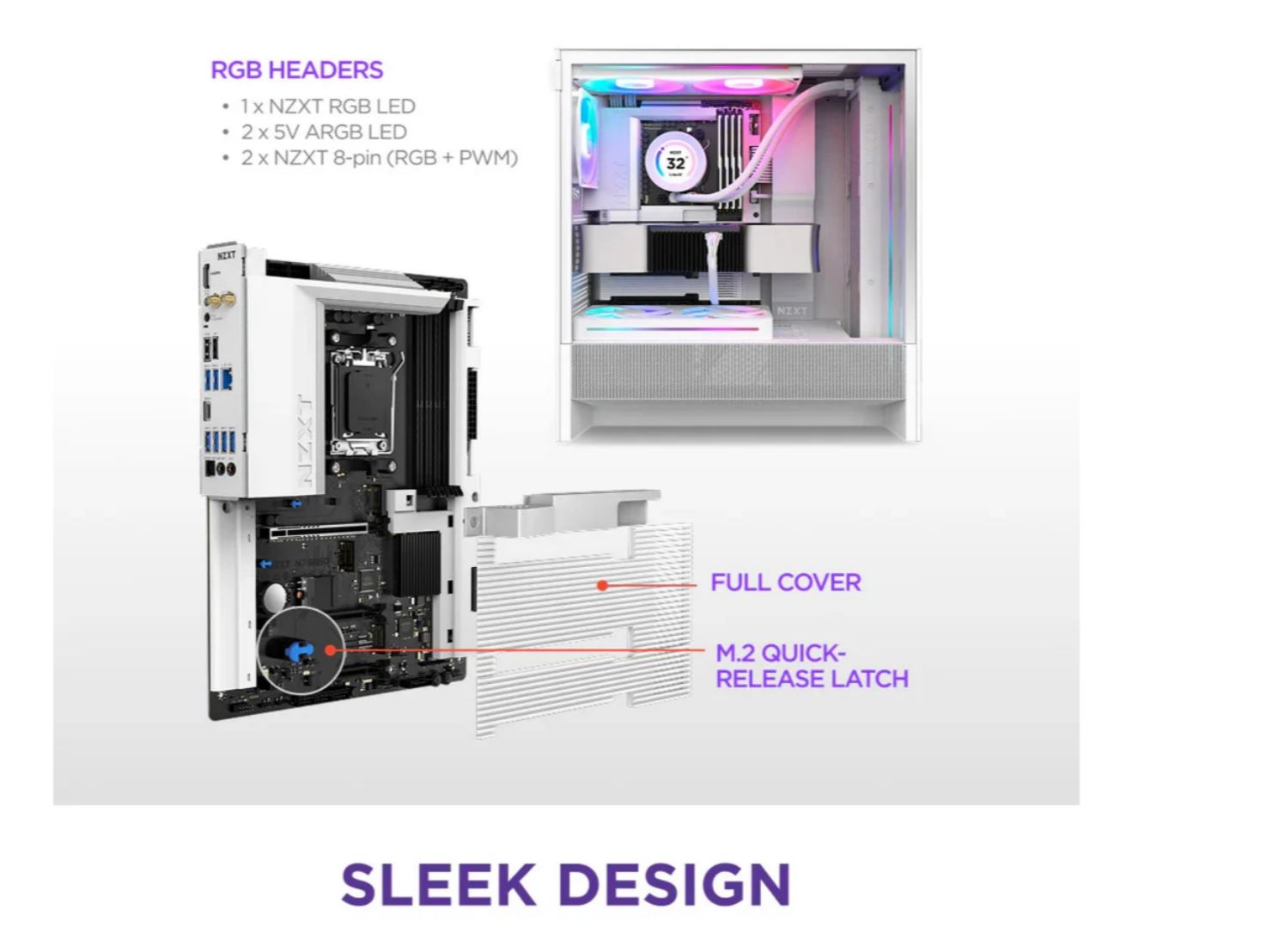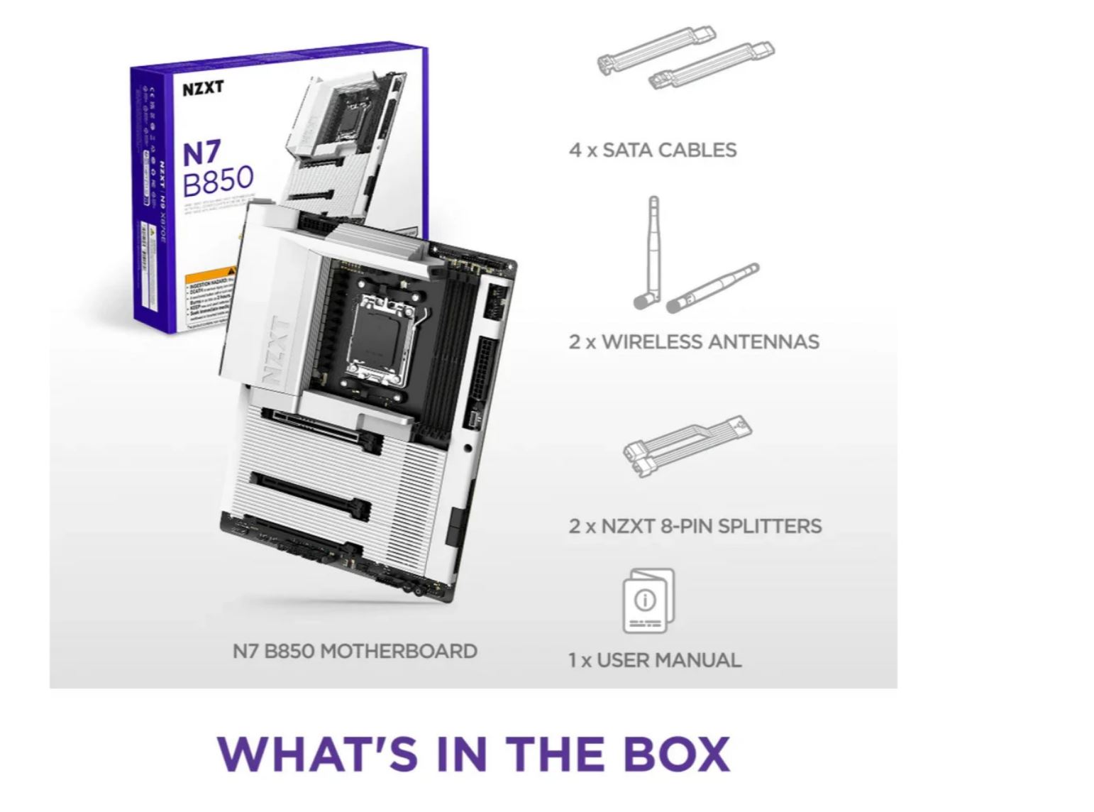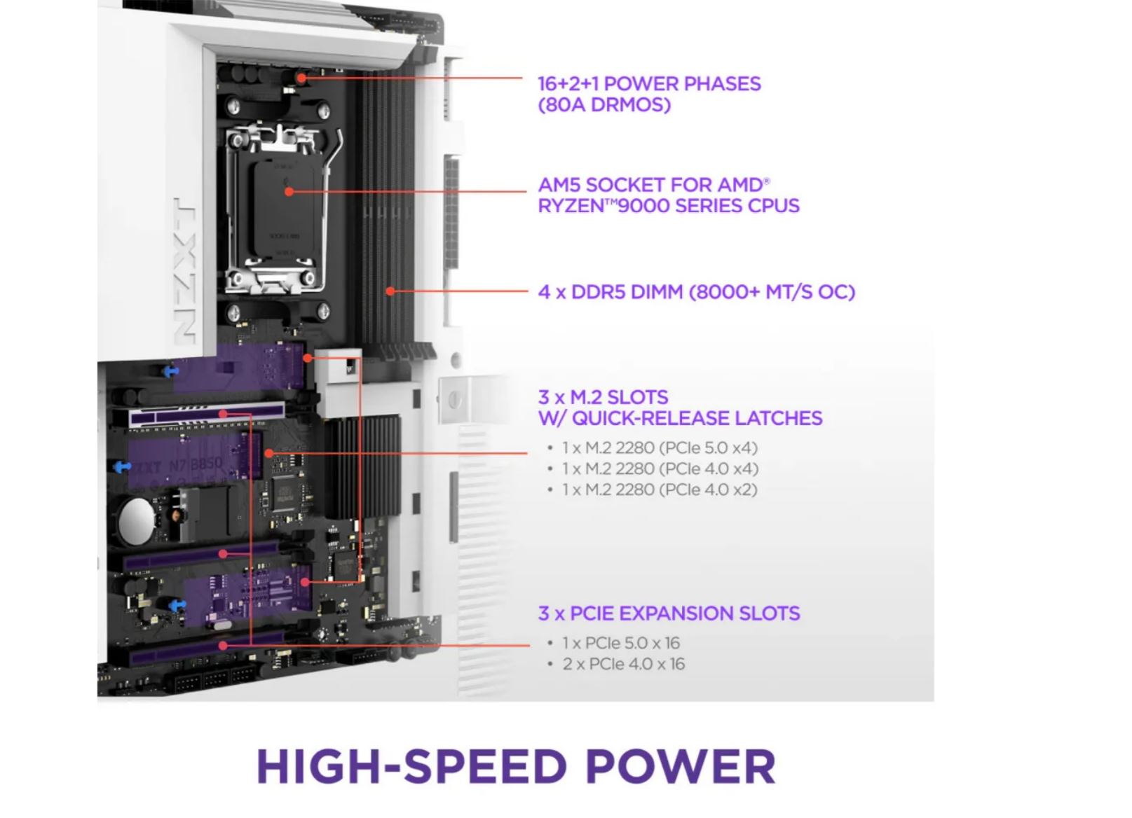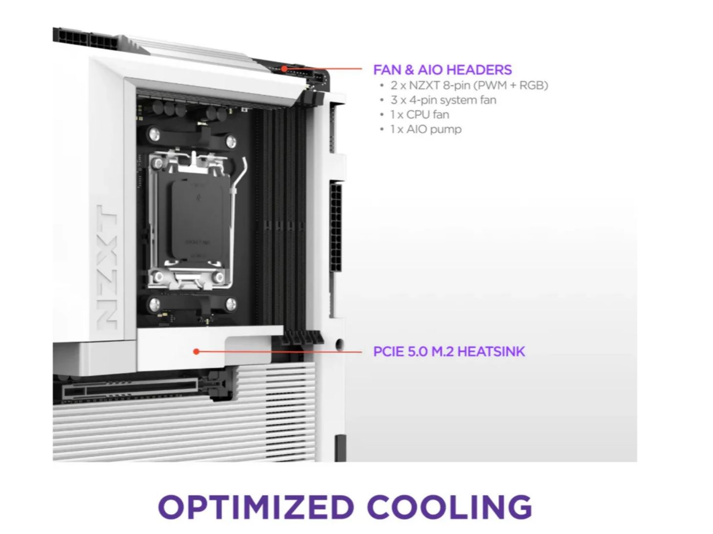 NZXT N7 B850 WiFi White AM5 Cover N7-B85XT-W1 - AMD Sockel AM5 (Ryzen Zen4) (N7-B85XT-W1)