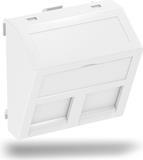 Datentechnikträger mit schrägem Auslass und Verschlussschieber zur Aufnahme von zwei Datentechnik-Anschlussmodulen mit RJ45-Buchse. Die Rastbefestigung eignet sich für den waagerechten und senkrechten Einbau in die ...