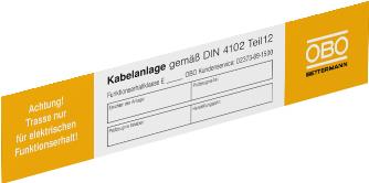 Selbstklebendes Kennzeichnungsschild zur zulassungsgerechten Kennzeichnung einer Kabelanlage für den Funktionserhalt gemäß DIN 4102 Teil ...