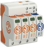 Obo Bettermann V20-3+NPE-280. Spitzenstrom-Common-Modus: 60000 A. Produktfarbe: Orange, Weiß. Gewicht: 458 g, Breite: 71,2 mm, Tiefe: 73 mm. Zertifizierung: CE. Material: Kunststoff (5095253)