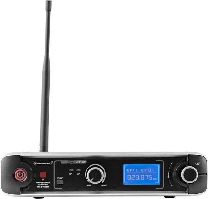• Omnitronic 13063300. Mikrofon-Typ: Handmikrofon, Kabellose Reichweite: 60 m. Receiver Typus: Empfänger für Rackmontage, Gehäusematerial Empfänger: Metall, AF-Frequenzgang des Empfängers: 50 (13063300)