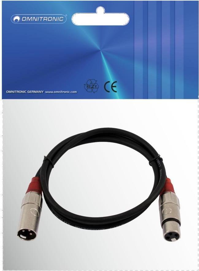 Omnitronic 3022045R XLR Verbindungskabel [1x XLR-Stecker 3 polig - 1x XLR-Buchse 3 polig] 1.50 m Schwarz (3022045R)
