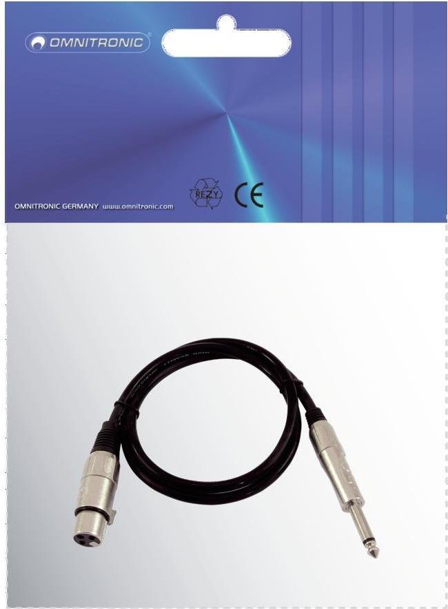 Omnitronic 3022516L XLR Adapterkabel [1x XLR-Buchse 3 polig - 1x Klinkenstecker 6.3 mm (mono)] 0.90 m Schwarz (3022516L)
