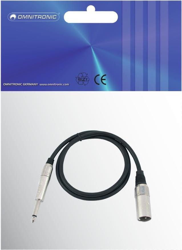 Omnitronic 3022519A XLR Adapterkabel [1x XLR-Stecker 3 polig - 1x Klinkenstecker 6.3 mm (mono)] 0.90 m Schwarz (3022519A)