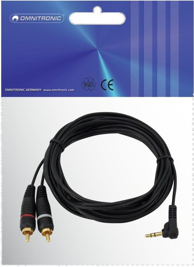 OMNITRONIC Adapterkabel 3,5 Klinke 90°/2xCinch 1,5m (30225010)