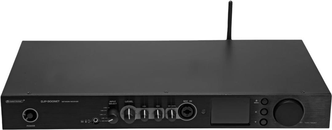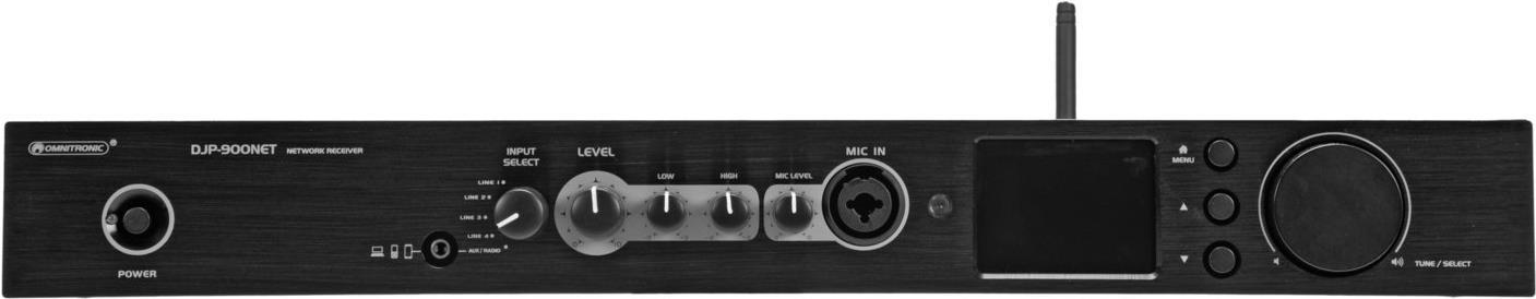 Der Omnitronic DJP-900NET von Steinigke Showtechnic definiert mit seiner fortschrittlichen Technologie und seinem robusten Design das Home-Audio-Erlebnis neu. Dieser Netzwerk-Audio-Receiver und DAB-Radio wurde speziell für die Bedürfnisse von Audiophilen entwickelt und bietet umfangreiche Anschlussmöglichkeiten über Bluetooth 4.2 EDR, IEEE 802.11b/g/n und Ethernet. Mit einer beeindruckenden Verstärkerleistung von bis zu 900 W pro Kanal liefert er einen kraftvollen, kristallklaren Klang über einen breiten Frequenzbereich von 20 - 20.000 Hz.