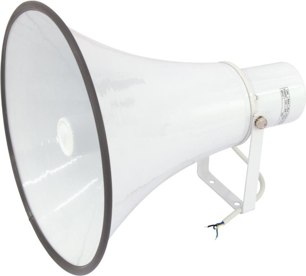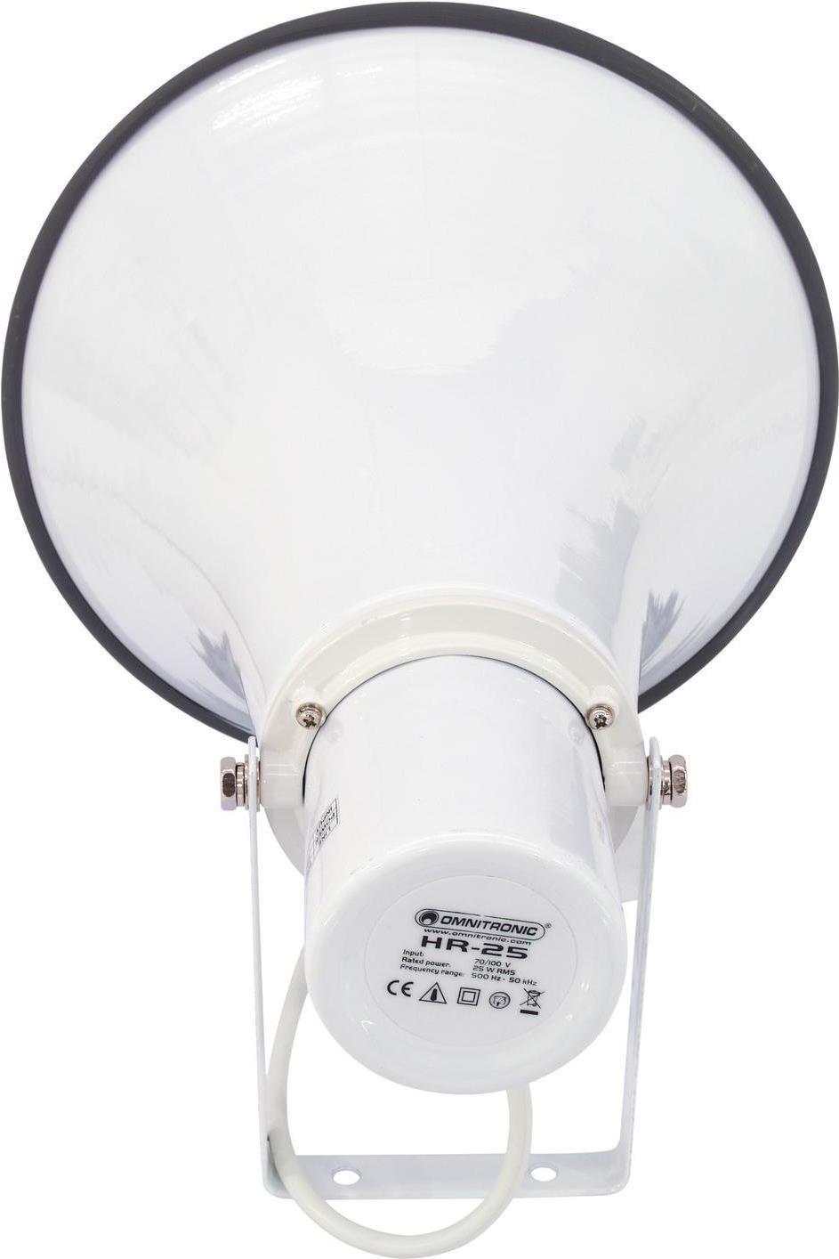 OMNITRONIC HR-20 DruckkammerlautsprecherHoher Schalldruck / breiter ÜbertragungsbereichIm wetterfesten Aluminiumgehäuse (IP 44)Arretiermöglichkeit am HaltebügelMaße (D x T): 204 x 305 mmAusstattung: DruckkammerlautsprecherIm wetterfesten Aluminiumgehäuse (IP 44)100-V-Trafo mit 2 LeistungsanzapfungenArretiermöglichkeit am HaltebügelFür Beschallungsanlagen im Außenbereich.Technische Daten: Lautsprecherart (Kategorisierung): DruckkammerlautsprecherWeitere technische Daten: Eingangsspannung: 100 VNennleistung: 10 W RMS (braun)20 W RMS (blau)COM (schwarz)Empfindlichkeit (1 W, 1 m): 102 dBFrequenzbereich: 400 Hz - 5 kHzMaße (D x T): 204 x 305 mmSchutzart: IP 44Gewicht: 1,7 kgVersandgewicht: 2.050 kg