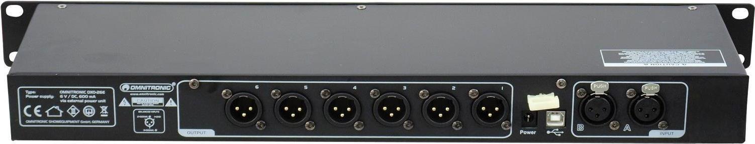 Omnitronic DXO-26E Stereo-Aktiv-FrequenzweicheDigitale Stereo-Aktiv-Frequenzweiche inkl. SoftwareDigitale Stereo-Aktiv-Frequenzweiche inkl. SoftwareFlexible Ausgangskonfigurationen für alle gängigen Stereo- und Monobetriebsarten2 analoge Eingänge und 6 analoge Ausgänge (XLR)Aktive Frequenzfiltertypen (Bessel, Butterworth und Linkwitz-Riley) mit bis zu 24 dB/Oktave Flankensteilheit teilen das Audiosignal in verschiedene FrequenzbereicheInkl. Software für PC und Mac zur Fernsteuerung vom Computer über USB-Schnittstelle: speichern, übertragen und verwalten Sie Ihre PresetsBis zu 30 User Presets lassen sich über die Software im Gerät abspeichern5 Menüsprachen wählbar (Deutsch, Englisch, Französisch, Spanisch, Niederländisch)Alphanumerische LCD-Anzeige mit 2 Zeilen à 16 ZeichenEingangsempfindlichkeit digital regelbarEin- und Ausgänge mit 4-stelliger LED-Pegelanzeige sowie Clip- und Limit-IndikatorStummschalter mit Indikator pro AusgangParametrischer 7-Band-Equalizer pro AusgangBis zu 7 ms Signaldelay an den Ausgängen einstellbarAusgangslimiter mit einstellbaren Limits und automatischen Attack- und Release-Einstellungen zum Überlastschutz Ihrer BeschallungsanlagePhasenlage invertierbarLock-Funktion zum Schutz der ProgrammeinstellungenKlemmanschlüsse für externe SteuereinheitRackeinbau, 1 HETechnische Daten: Gewicht: 2.3 kgProduktabmessung, Breite: 540 mmProduktabmessung, Höhe: 80 mmProduktabmessung, Tiefe: 250 mmWeitere technische Daten: Spannungsversorgung: 230 V AC, 50 Hz über mitgeliefertes NetzteilEingänge: 2 x XLR, symmetrischMaximaler Eingangspegel: +22 dBuEingangsimpedanz: 10 kOhmAusgänge: 6 x XLR, symmetrischAusgangsimpedanz: 50 Ohm (elektronisch symmetriert)Ausgangsempfindlichkeit: -50 bis +12 dBMaximaler Ausgangspegel: +9 dBuSamplingfrequenz: 65 kHzDynamikbereich D/A-Wandler: 114 dBADynamikbereich A/D-Wandler: 110 dBAFrequenzgang: 20 Hz bis 30 kHzKlirrfaktor: 0,005 %USB-Interface: Typ BExterne Steuerung: über KlemmenFiltertypen: Bessel, Butterworth oder Linkwitz-RileySlopes: 6, 12, 18 oder 24 dB/OktaveTrennfrequenz: 20 bis 20000 HzDelay: 0 bis 7 msin Schritten zu 15 µs (= 5 mm)Maße (BxHxT): 482 x 44 x 128 mmGewicht: 3 kg