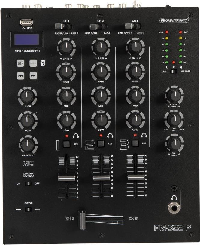 OMNITRONIC PM-322P 3-Kanal-DJ-Mixer mit Bluetooth und USB-Player (10006874)