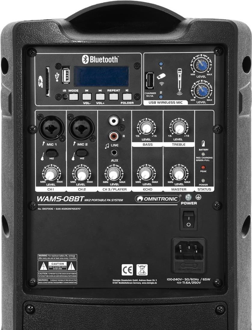 Omnitronic WAMS-08BT MK2 Aktiver PA Lautsprecher Bluetooth, Integrierter MP3-Player, Kabellos (13107006)