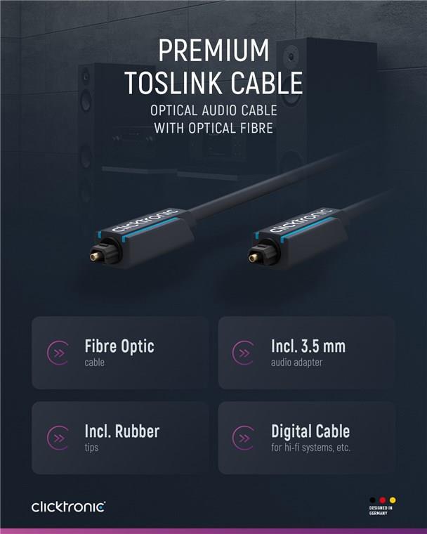 Die optodigitale Audio-Verbindung mit hoher Lichtausbeute und Datenübertragungsrate. Der 3-fach umspritzte Stecker rastet einfach ein, sitzt fest und zuverlässig. Das Ergebnis ist klarer Raumklang und ein Audio-Erlebnis so, wie es sein sollte. Dank des beiliegenden 3,5 mm-Adapters besonders praktisch mit vielen mobilen Geräten, Notebooks und Spielekonsolen einsetzbar.
