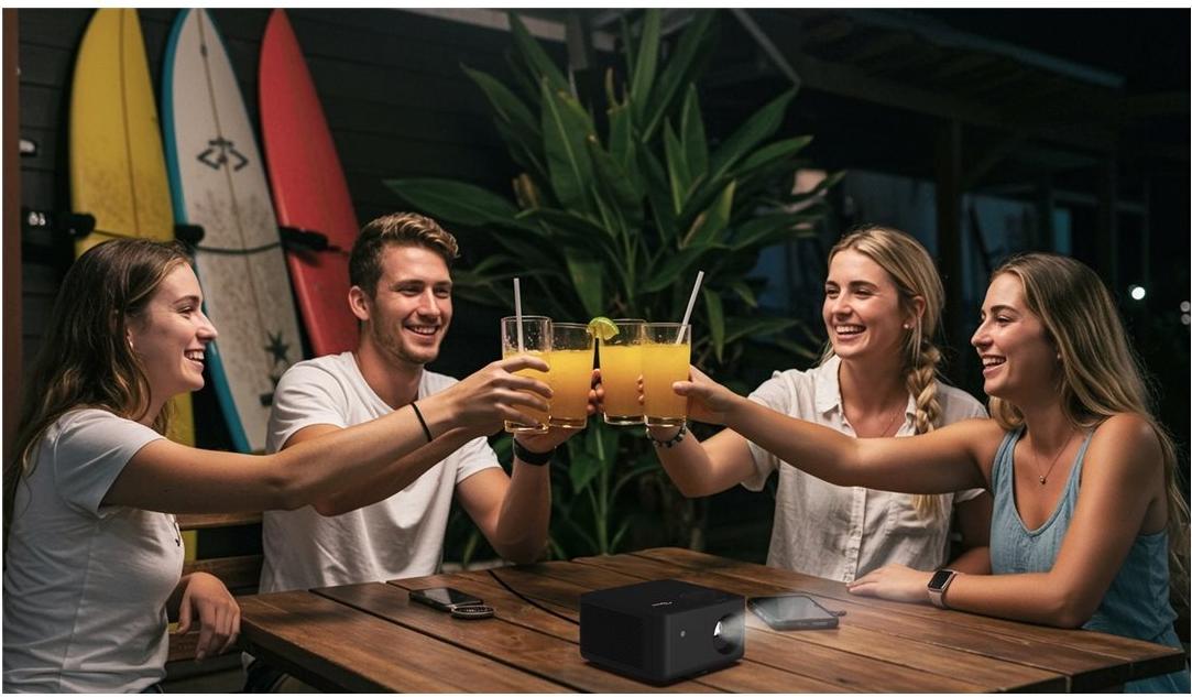Mit einem Mono-Tonausgabemodus und einer integrierten Lautsprecherleistung von 5 Watt liefert der Projektor einen klaren Ton, der die Bilder begleitet. Die Möglichkeit, in verschiedenen Videomodi zu projizieren, darunter 1080p und 4K, erhöht die Vielseitigkeit und macht ihn sowohl für Filme als auch für Spiele geeignet. Das Design entspricht der Schutzklasse IP5X, schützt vor Staub und gewährleistet Langlebigkeit in verschiedenen Umgebungen. Eine Lampenlebensdauer von bis zu 30.000 Stunden reduziert den Wartungsaufwand und ermöglicht eine längere Nutzung ohne häufige Auswechslungen.