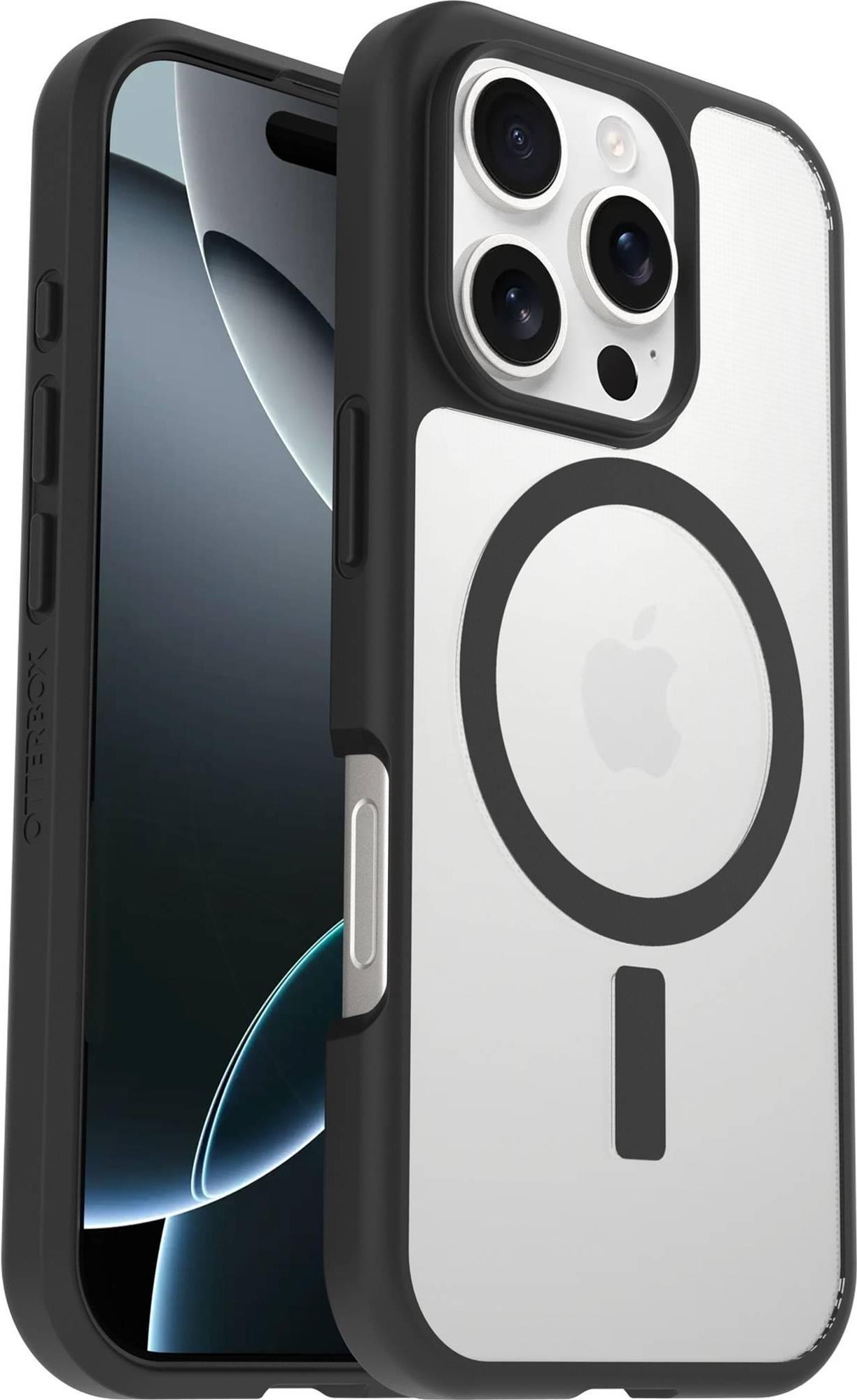 Otter Products OtterBox React Series - Hintere Abdeckung für Mobiltelefon - kompatibel mit MagSafe - Black Crystal (transparent/schwarz) - für Apple iPhone 16 Pro (77-96251)