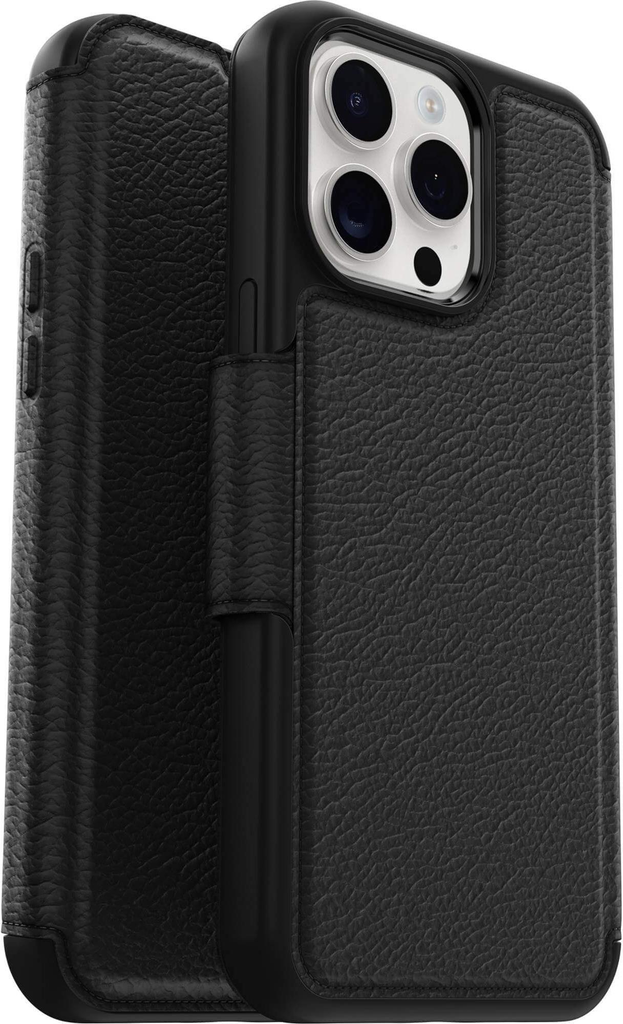 Otter Products OtterBox Strada Series Folio - Flip-Hülle für Mobiltelefon - kompatibel mit MagSafe - Leder - Shadow (schwarz) - für Apple iPhone 15 Pro Max (77-93568)