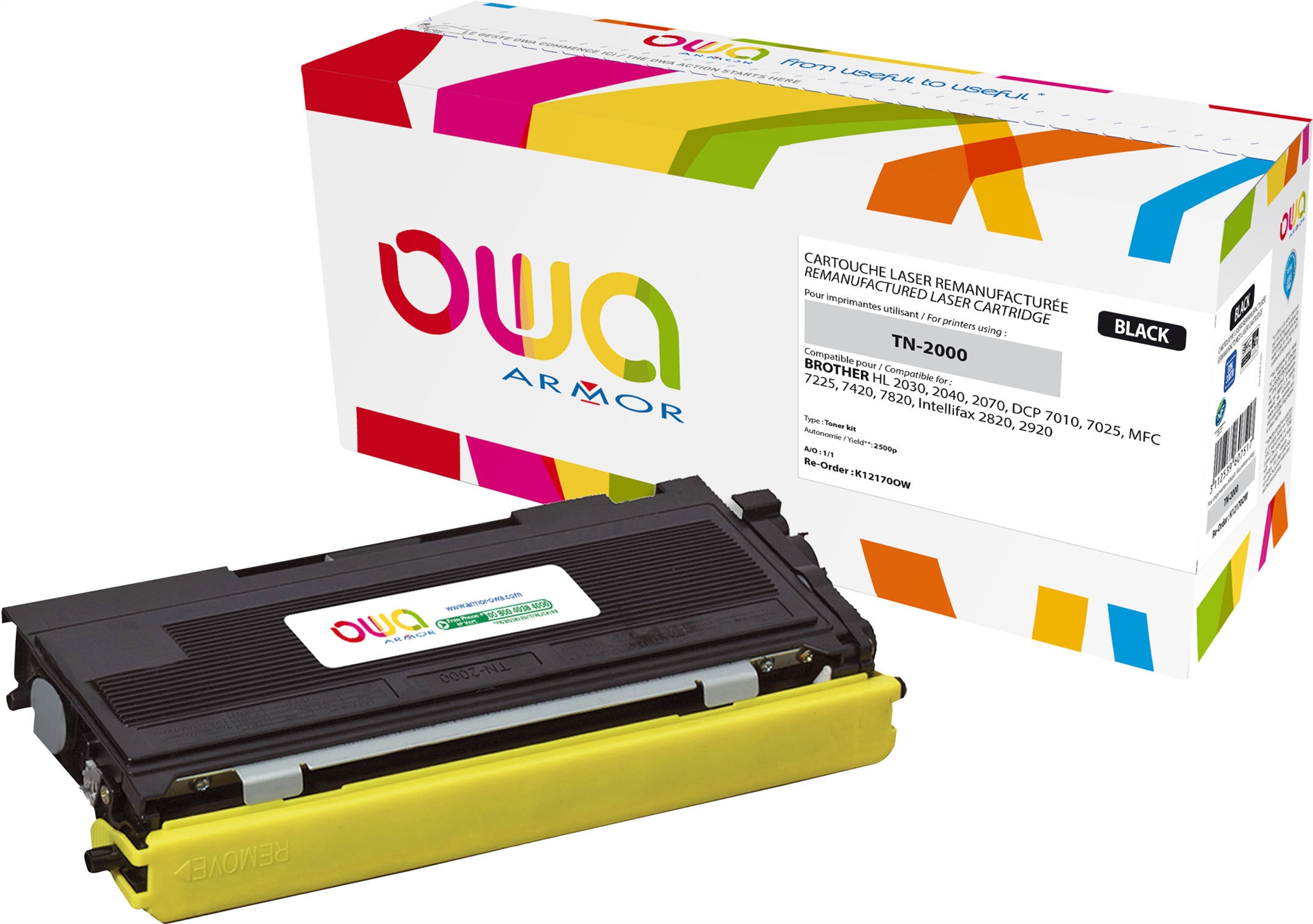 | Kompatibel mit | Brother DCP-7010, DCP-7010L, DCP-7025, HL-2030, HL-2030R, HL-2032, HL-2040, HL-2040N, HL-2040R, HL-2070, HL-2070N, HL-2070NR, MFC-7225n, MFC-7420, MFC-7820N; FAX-2820, 2825, 2920; IntelliFAX 2820, 2920 |