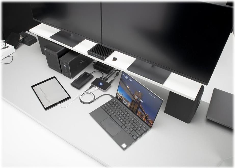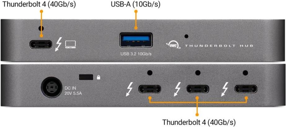 Mit dem OWC Thunderbolt Hub können Sie zum ersten Mal die Konnektivität zwischen all Ihren Geräten mit all den Thunderbolt-Anschlüssen, die Sie schon immer haben wollten, konsolidieren und vereinfachen. Die vier Thunderbolt (USB-C)-Anschlüsse des OWC Thunderbolt Hub und ein USB-Anschluss erweitern Ihre Anschlussmöglichkeiten massiv.