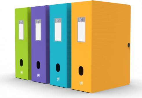 Oxford Sammelbox Memphis, Füllhöhe: 100 mm, sortiert Style DIN A4, aus PP, Stärke: 0,7 mm, mit beschriftbarem - 4 Stück (400120893) (geöffnet)