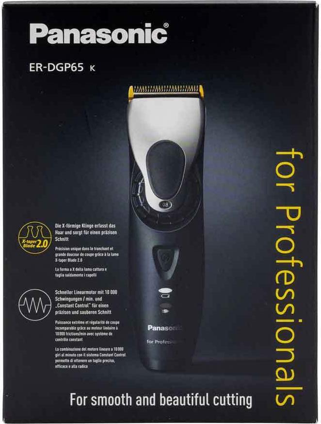 Die Panasonic ER-DGP65 Haarschneidemaschine aus der Panasonic for Professionals Linie ist auf Präzision und Leichtigkeit ausgelegt und damit ein unverzichtbares Werkzeug für jeden Profi. Dieser Haarschneider bietet mit seinen X-Taper 2.0 Klingen, die von einem Linearmotor angetrieben werden, ein nahtloses Schneideerlebnis und sorgt für konstante Kontrolle und Präzision bei jedem Schnitt. Die mitgelieferten Kammaufsätze ermöglichen eine breite Palette von Stylingoptionen, von 3 mm bis 15 mm, ergänzt durch präzise Längeneinstellungen für detaillierte Arbeiten.