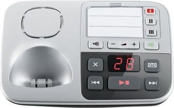 Bei diesem Modell kann die Anruflautstärke um das Vierfache der Lautstärke der standardmäßigen DECT-Telefone von Panasonic (KX-TG6821) erhöht werden. Dadurch sind Anrufer besser zu hören. Sie können die \"Verstärker\"-Taste an der Seite des Mobilteils drücken, um die Lautstärke während des Anrufs zu erhöhen.