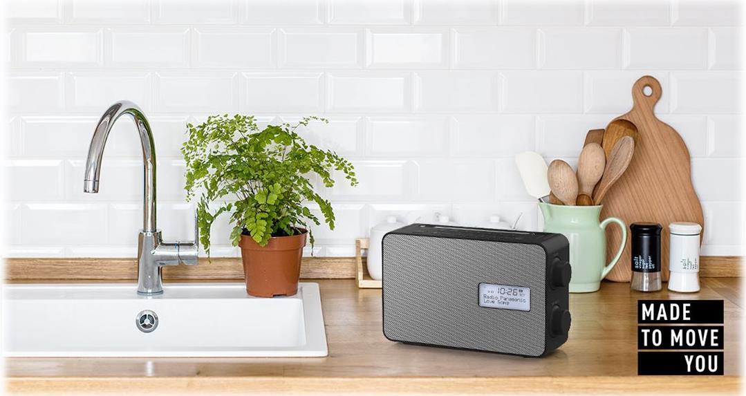 Radiofans können mit dem RF-D30BT digitale Programme frei und mit kristallklarem Klang empfangen. Dank Spitzwasserschutz (IPX4), Bluetooth und Netz-/Batteriebetrieb empfiehlt es sich als Küchenradio und Begleiter für unterwegs. Mit der USB-Ladefunktion für das Smartphone kann gestreamte Musik, auch bei geringen Handyakku, einfach auf dem DAB+ Radio weiterlaufen.