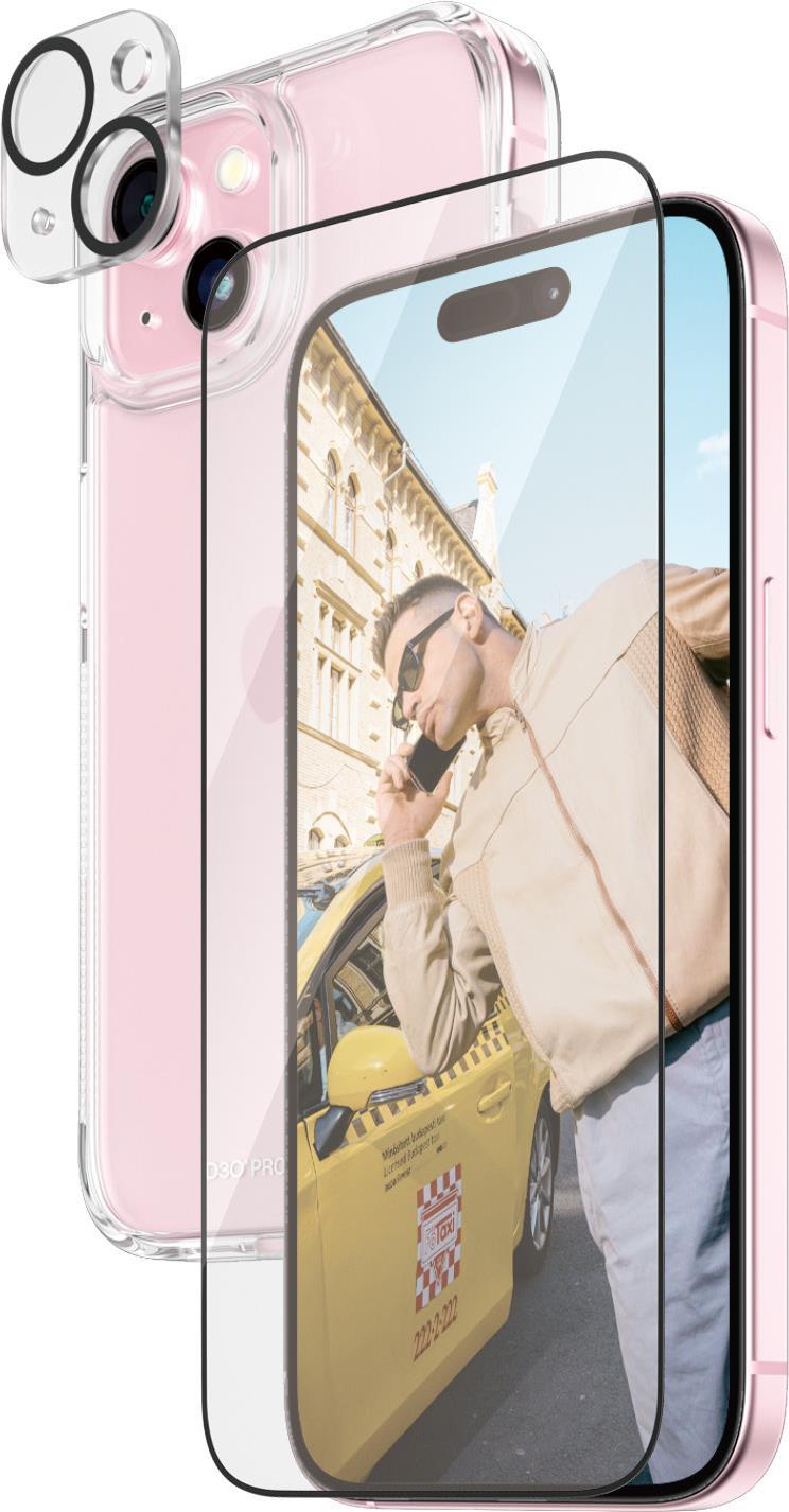 PanzerGlass - 3-in-1 Pack - Schutzkit für Display / Objektiv / Rückseite für Handy - Glas - Rahmenfarbe schwarz - für Apple iPhone 15 (B1172+2809)