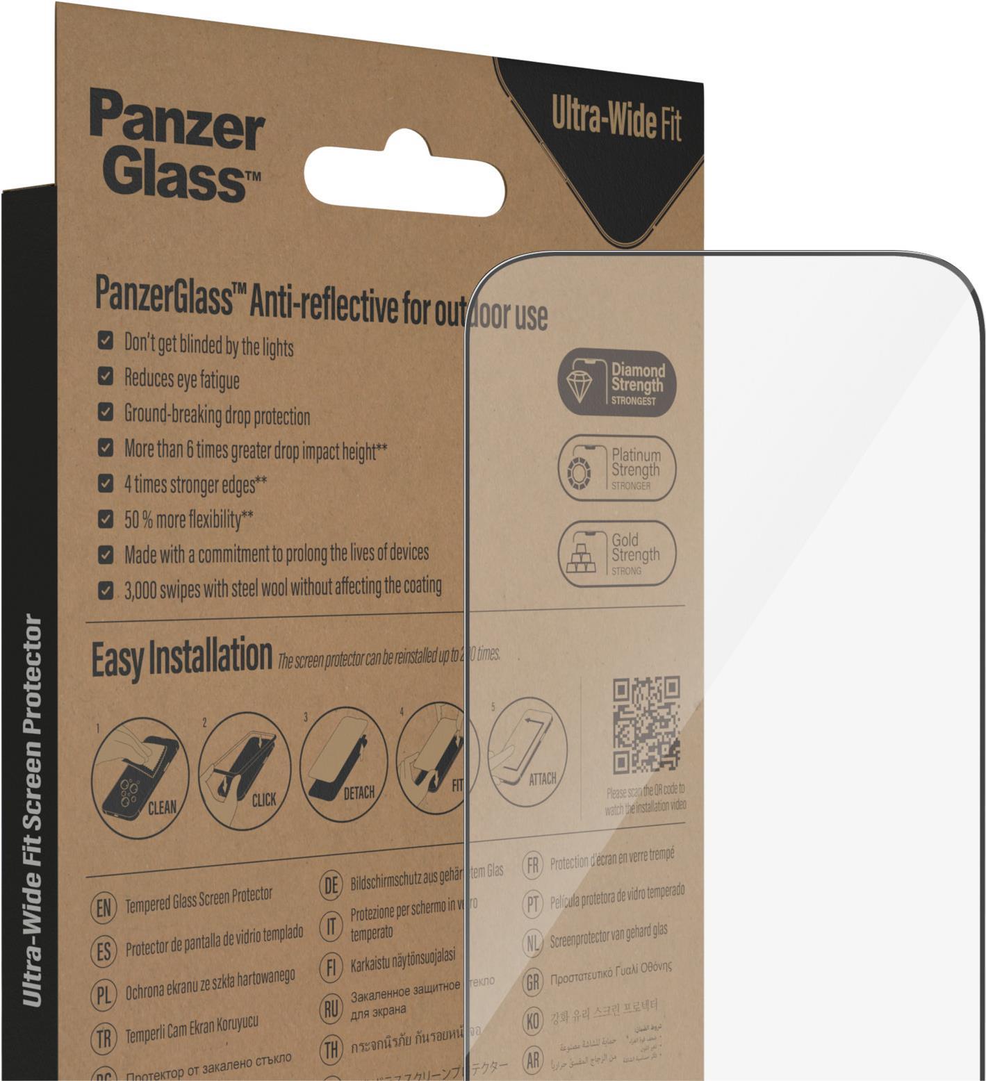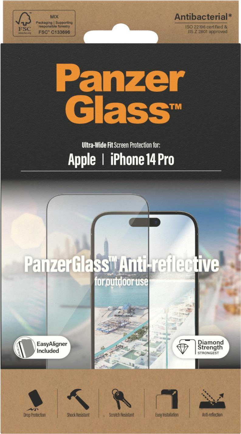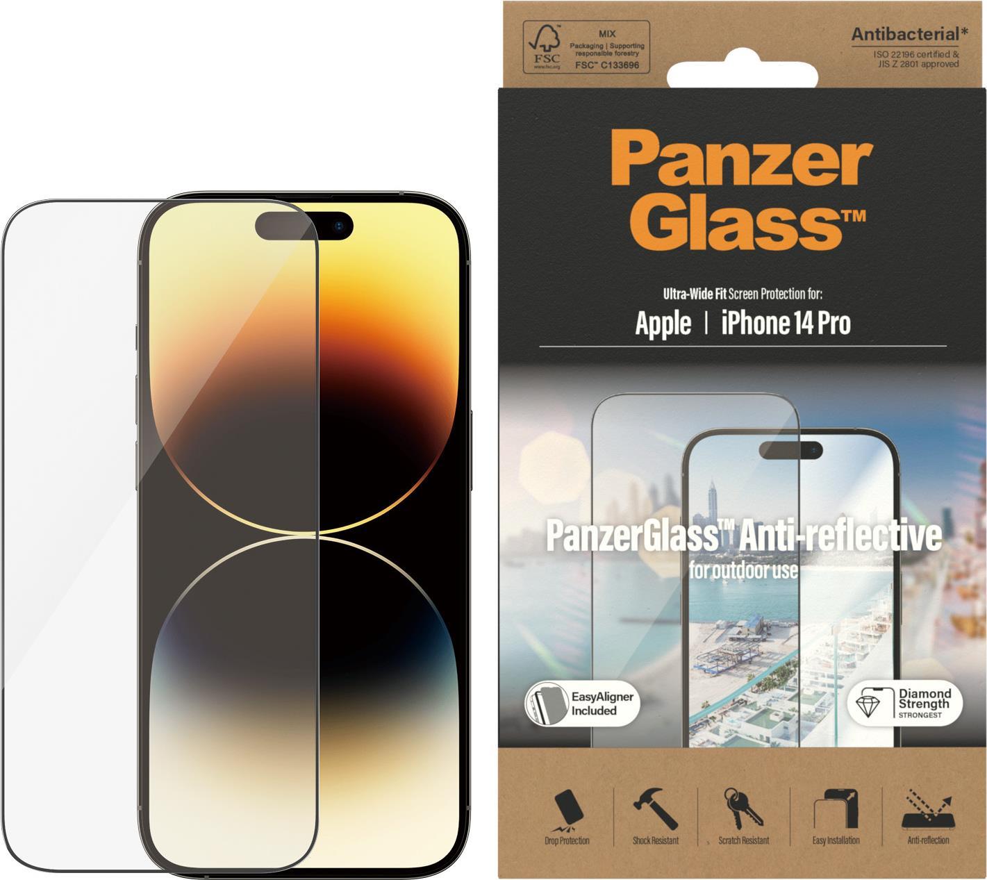 PanzerGlass ™ Anti-reflective Displayschutz Apple iPhone 14 | Ultra-Wide Fit m. EasyAligner - Klare Bildschirmschutzfolie - Apple - iPhone 14 Pro - Kratzresistent - Schockresistent - Antibakteriell - Transparent - 1 Stück(e) (2788)