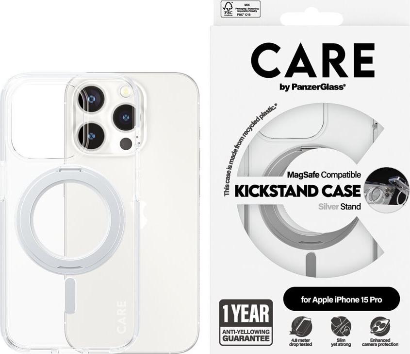 • PanzerGlass CARE by Case Silver Kickstand MagSafe iPhone15 Pro (1414)