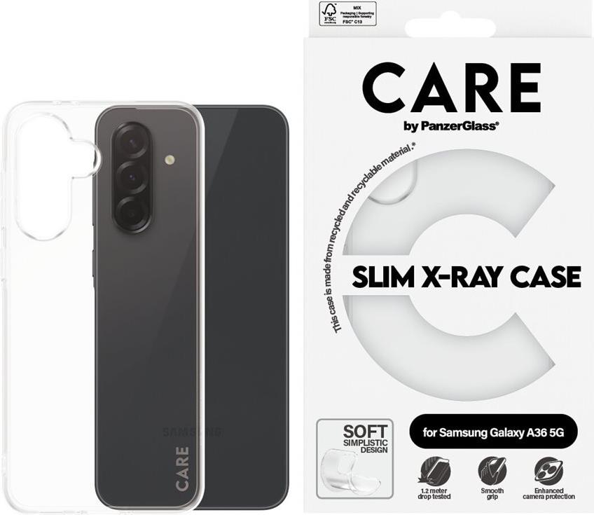 Die CARE by PanzerGlass X-Ray ist eine Schutzhülle für Mobiltelefone. Diese aus Kunststoff gefertigte Rückabdeckung sorgt für ein schlankes Design und schützt gleichzeitig vor Kratzern und Stürzen. Mit einer Fallschutzklasse von bis zu 1,2 m absorbiert diese Hülle Stöße und ist somit für den täglichen Gebrauch geeignet.