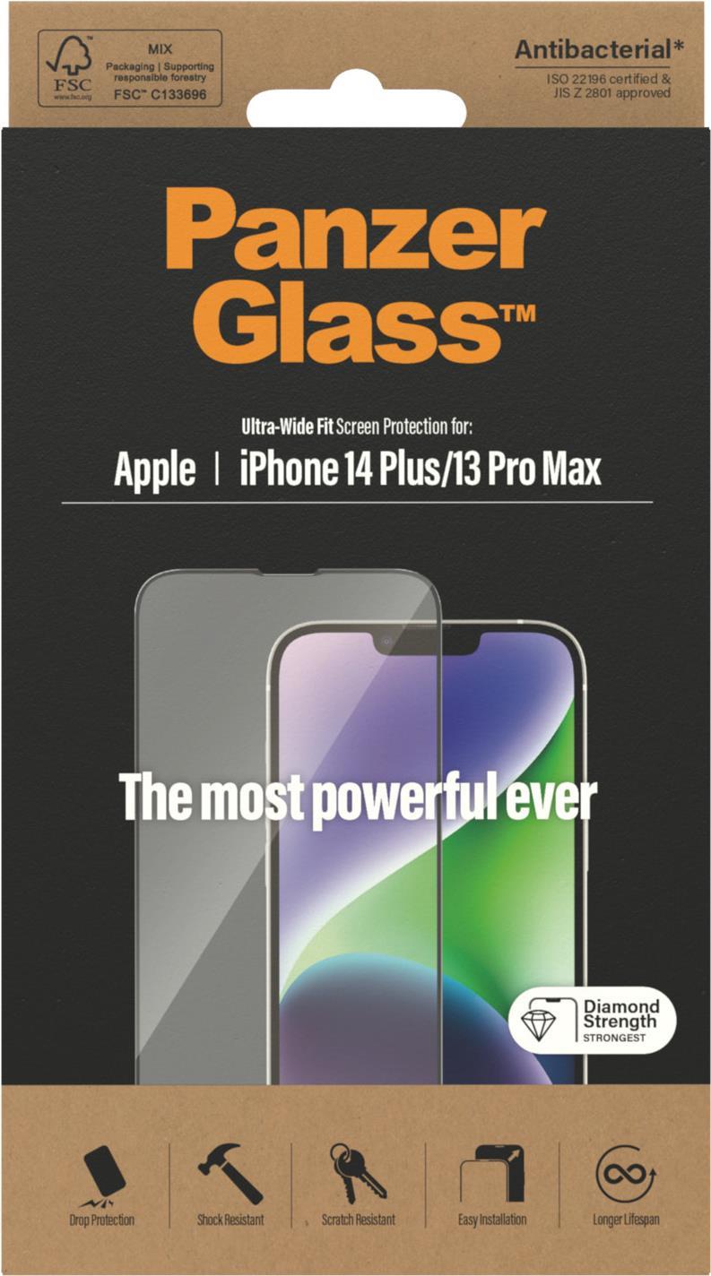 PanzerGlass - Bildschirmschutz für Handy - ultra-wide fit - Glas - Rahmenfarbe schwarz - für Apple iPhone 13 Pro Max, 14 Plus (2773)