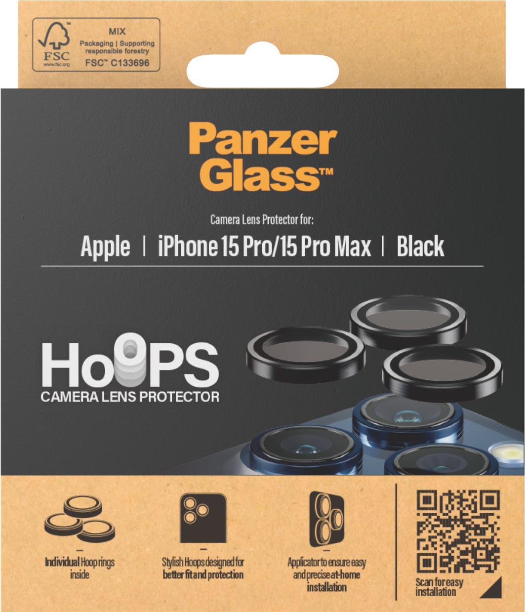 PanzerGlass Hoops - Objektivschutz für Handy - Glas - Schwarz - für Apple iPhone 15 Pro, 15 Pro Max (1139)
