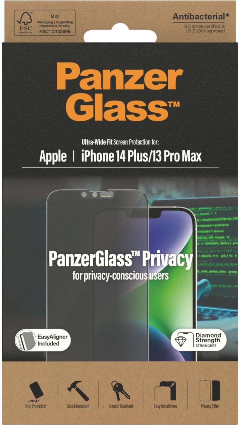PanzerGlass - Bildschirmschutz für Handy - ultra-wide fit - Glas - mit Sichtschutzfilter - Rahmenfarbe schwarz - für Apple iPhone 13 Pro Max, 14 Plus (P2785)