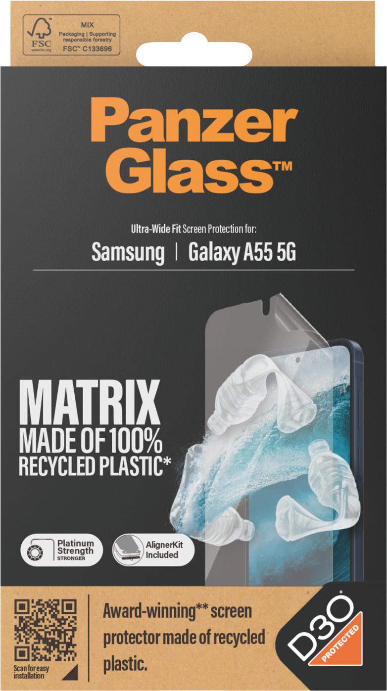 PanzerGlass ® MATRIX Displayschutz Samsung Galaxy New A54 5G | Ultra-Wide Fit w. AlignerKit. Markenkompatibilität: Samsung, Kompatibilität: Samsung - Galaxy new A54 5G. Trockene Anwendung. Schutzfunktion: Kratzresistent, Schockresistent. Material: Polyethylenterephthalat, Produktfarbe: Transparent. Menge pro Packung: 1 Stück(e) (7362)