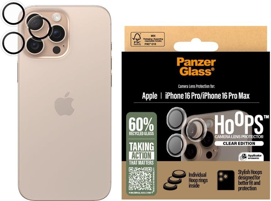 PanzerGlass Hoops - Clear Edition - Objektivschutz für Handy - durchsichtig - für Apple iPhone 16 Pro, 16 Pro Max (1286)