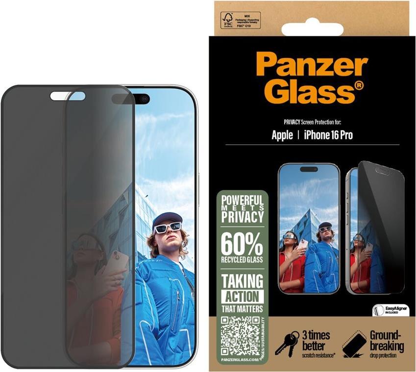 PanzerGlass - Bildschirmschutz für Handy - ultrabreite Passform - Glas - mit Sichtschutzfilter - 2-Wege - Rahmenfarbe schwarz - für Apple iPhone 16 Pro (P2862)