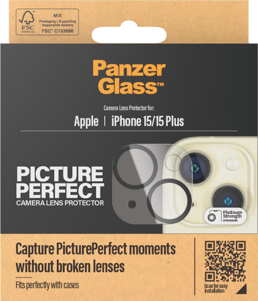 PanzerGlass PicturePerfect - Objektivschutz für Handy - Glas - Rahmenfarbe schwarz - für Apple iPhone 15, 15 Plus (1136)
