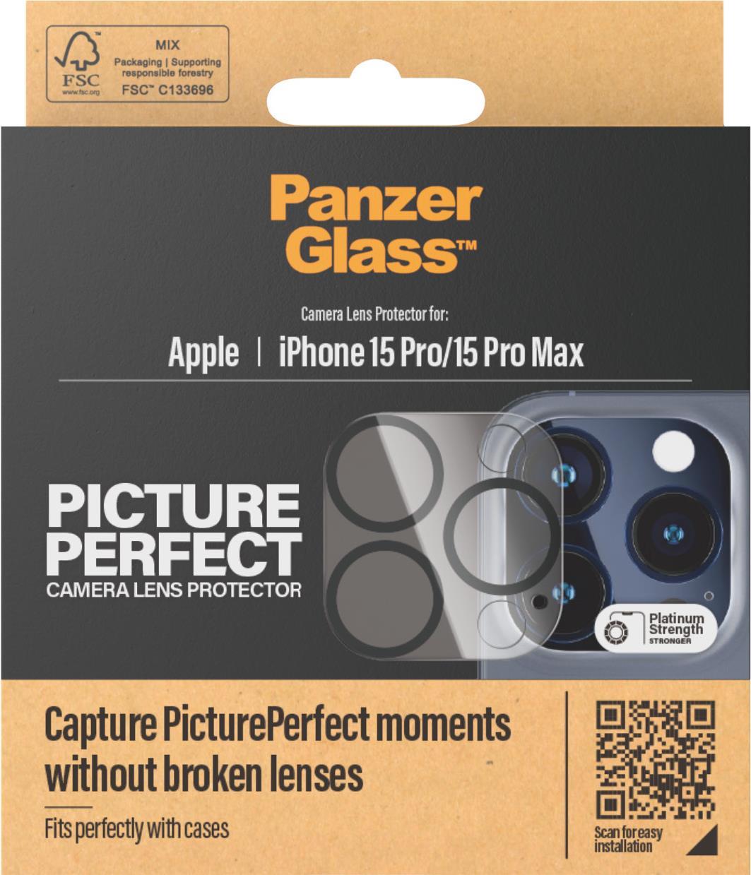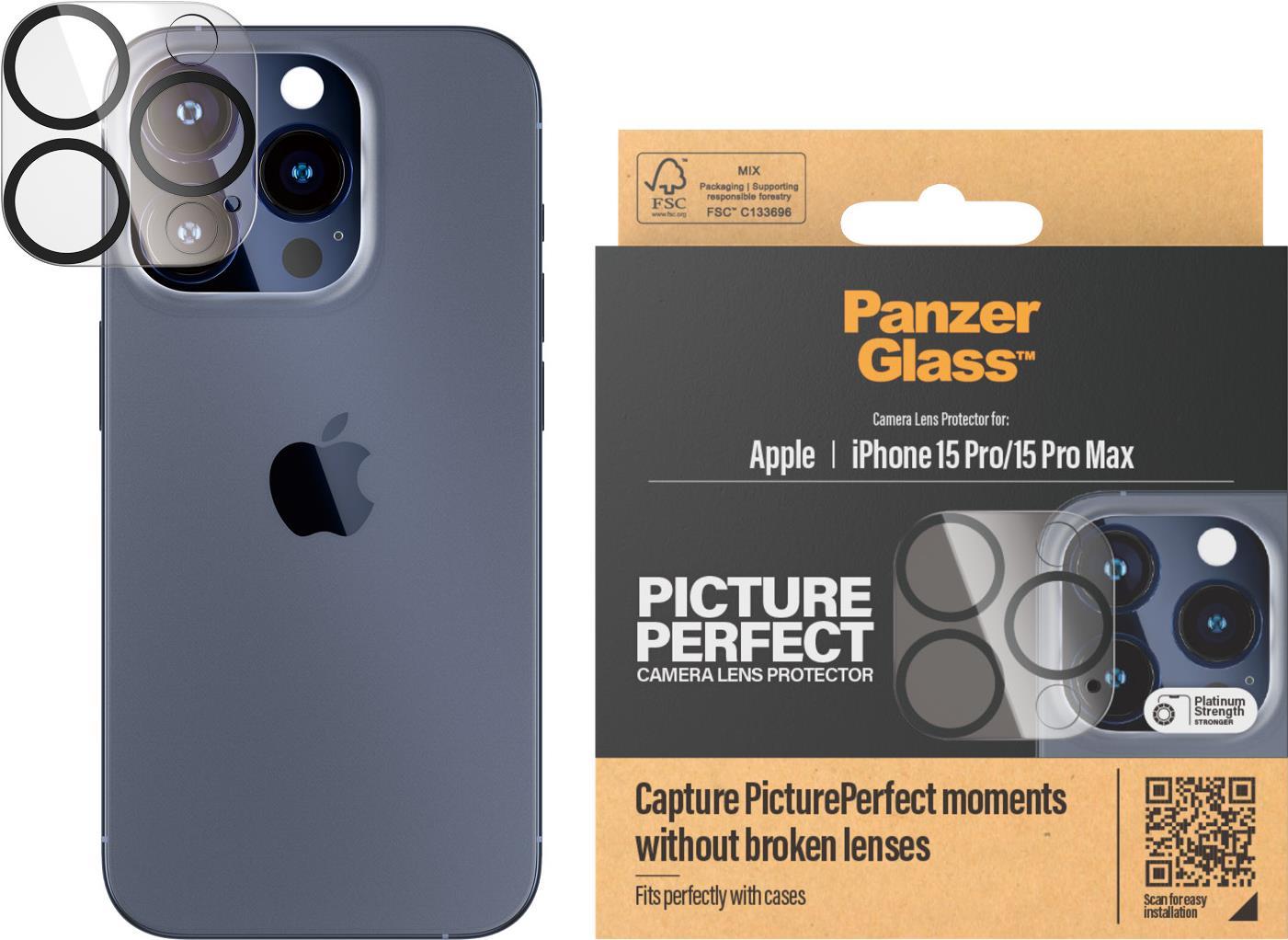 PanzerGlass PicturePerfect - Objektivschutz für Handy - Glas - Rahmenfarbe schwarz - für Apple iPhone 15 Pro, 15 Pro Max (1137)