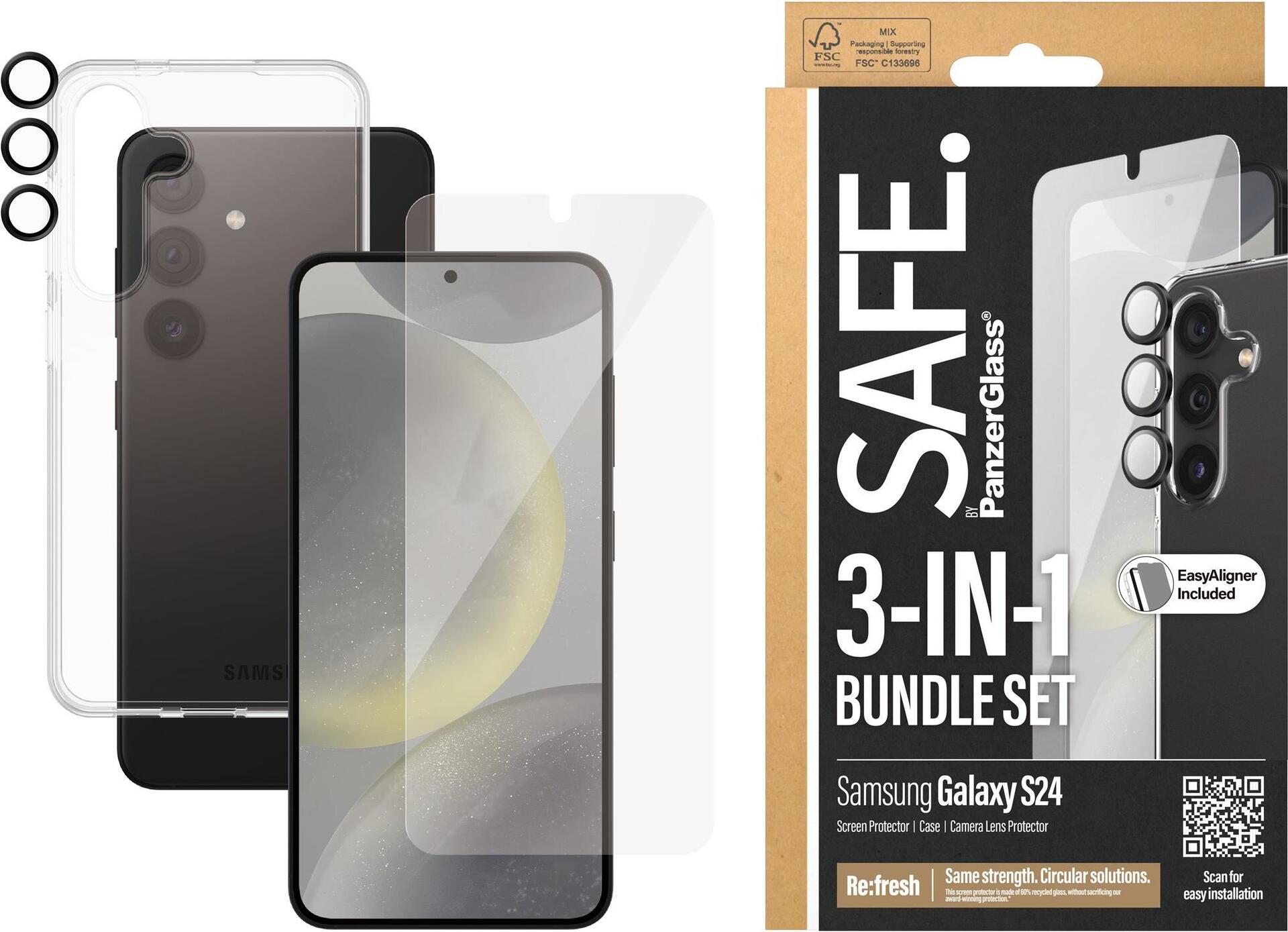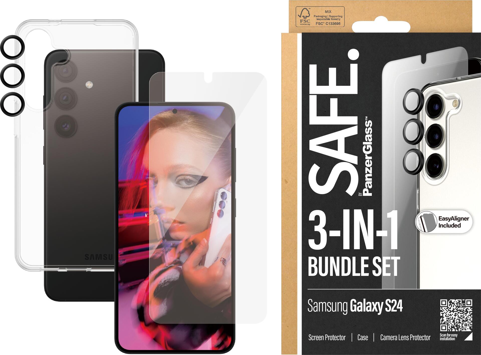 PanzerGlass SAFE. by ® 2-in-1 Set Samsung Galaxy S24. Markenkompatibilität: Samsung, Kompatibilität: Samsung - Galaxy S24. Trockene Anwendung. Schutzfunktion: Kratzresistent, Schockresistent. Material: Polyethylenterephthalat, Gehärtetes Glas, Produktfarbe: Transparent. Menge pro Packung: 1 Stück(e) (BSAFE95672)
