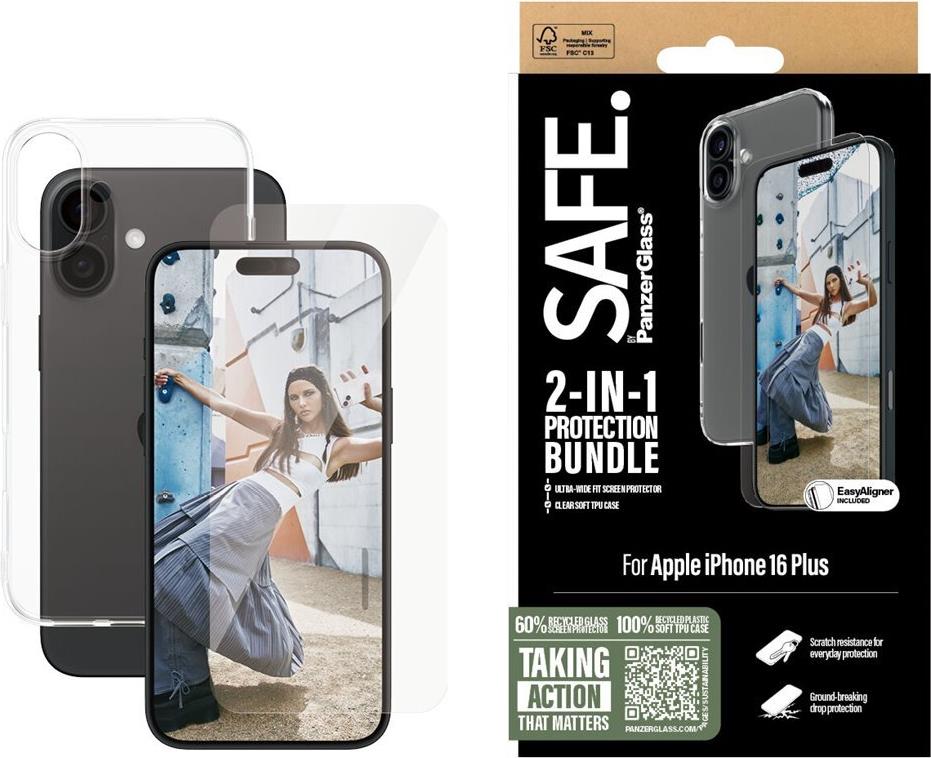 Die Schutzhülle SAFE. by PanzerGlass wurde für Smartphone-Nutzer entwickelt, die zuverlässigen Schutz und Komfort suchen. Diese aus recyceltem thermoplastischem Polyurethan (TPU) gefertigte Rückseitenhülle verbindet Nachhaltigkeit mit Funktionalität und sorgt dafür, dass Nutzer sowohl Stil als auch umweltfreundliche Eigenschaften genießen können. Diese Hülle unterstützt kabelloses Laden, ermöglicht einfachen Zugriff auf die Tasten und bietet eine weiche Haptik für komfortable Handhabung. Mit zusätzlichen Vorteilen wie Kratzfestigkeit, Fallschutz bis zu 1,2 m und Stoßfestigkeit ist diese Hülle ein unverzichtbares Zubehör, um Ihr Gerät vor täglichen Abnutzungserscheinungen zu schützen. Die mitgelieferte Displayschutzfolie vervollständigt das 2-in-1-Schutzkit und macht es zu einer praktischen Wahl für alle, die ihr Smartphone in makellosem Zustand halten möchten.