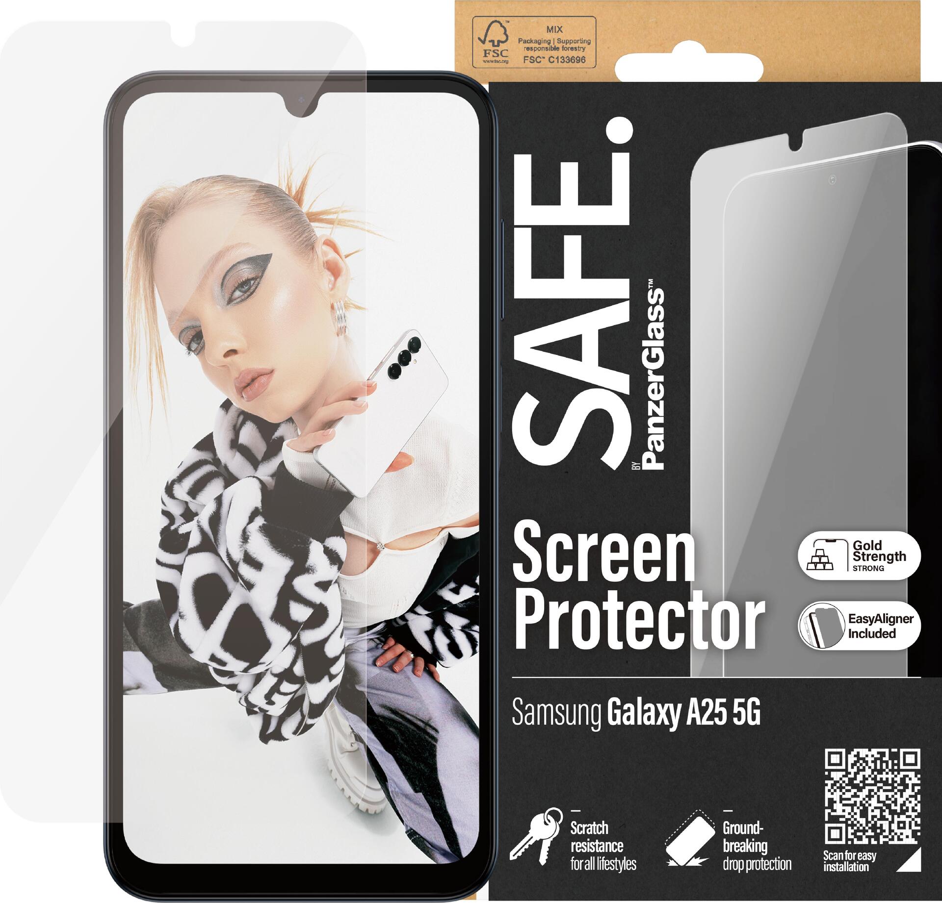 PanzerGlass SAFE. by ® Displayschutz Samsung Galaxy A25 5G | Ultra-Wide Fit m. EasyAligner - Samsung - Samsung - Galaxy new A24 5G - Trockene Anwendung - Kratzresistent - Schockresistent - Transparent - 1 Stück(e) (SAFE95680)
