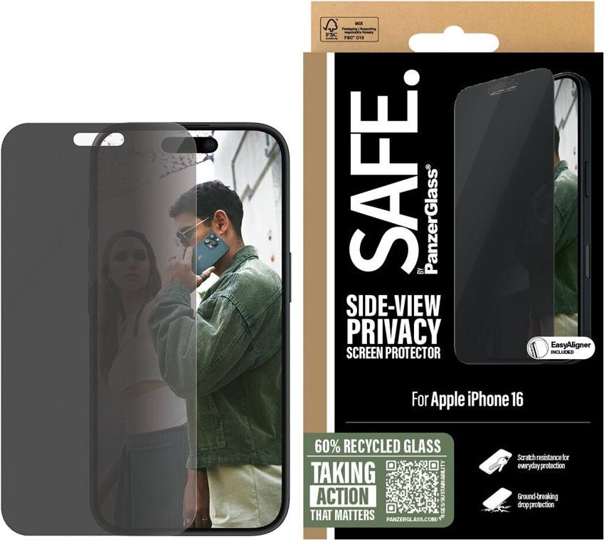 Die SAFE. by PanzerGlass Displayschutzfolie bietet eine umfassende Schutzschicht für Mobiltelefone. Gefertigt aus gehärtetem Glas, sorgt sie für eine ultrabreite Passform, die das Benutzererlebnis verbessert und gleichzeitig das Gerät vor Kratzern, Stürzen und anderen alltäglichen Gefahren schützt. Dieser Bildschirmschutz verfügt über eine wischfeste, schmutzabweisende und gegen Fingerabdrücke resistente Beschichtung, die sicherstellt, dass der Bildschirm unter verschiedenen Bedingungen klar und lebendig bleibt. Darüber hinaus ermöglicht die 2-Wege-Sichtschutzfunktion den Nutzern, ihre Privatsphäre zu wahren, während sie ihre Geräte in der Öffentlichkeit verwenden. Zusammen mit dem EasyAligner für eine mühelose Installation ist diese Displayschutzfolie für alle gedacht, die sowohl Wert auf Funktionalität als auch auf Ästhetik legen. Sie wird aus recycelten Materialien hergestellt und steht für ein Engagement für Nachhaltigkeit, ohne Kompromisse bei Qualität und Leistung einzugehen.