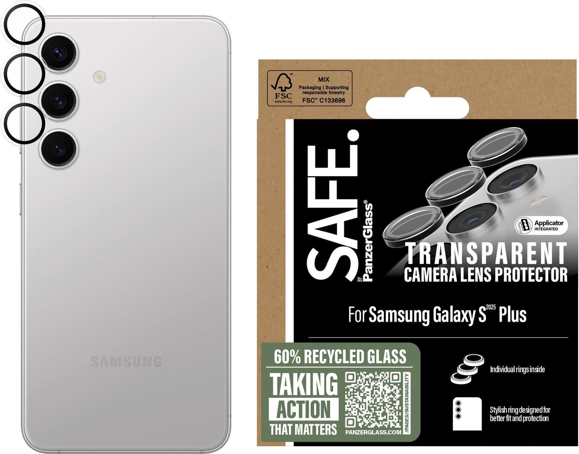 Der SAFE. by PanzerGlass Objektivschutz schützt die Kameralinsen von Mobiltelefonen. Dieses Produkt besteht aus gehärtetem Glas und 100 % recyceltem Polycarbonat und gewährleistet Nachhaltigkeit ohne Kompromisse bei der Qualität. Das schlanke Design umfasst eine oleophobe Beschichtung, die die Widerstandsfähigkeit gegen Fingerabdrücke, Öl und Wasser verbessert und Ihre Kameralinse für jede Aufnahme sauber und klar hält.