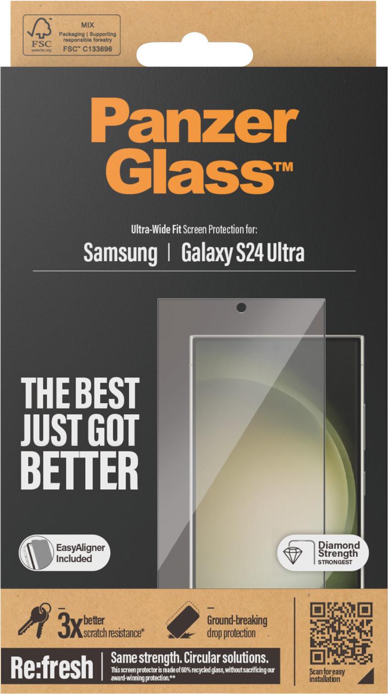 PanzerGlass - Bildschirmschutz für Handy - ultrabreite Passform mit EasyAligner - Glas - Rahmenfarbe schwarz - für Samsung Galaxy S24 Ultra (7352)