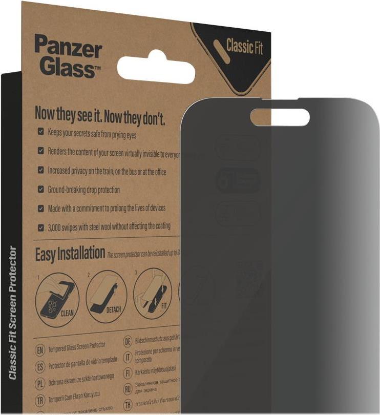 PanzerGlass - Bildschirmschutz für Handy - klassische Passform - Glas - mit Sichtschutzfilter - für Apple iPhone 14 Pro (P2768)